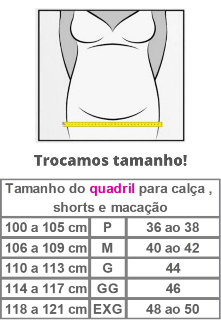Tamanho: Todas as roupas da Mundo Gestante se ajustam até o nono mês com muito conforto pois possuem modelagem com medidas especiais para mulheres grávidas.